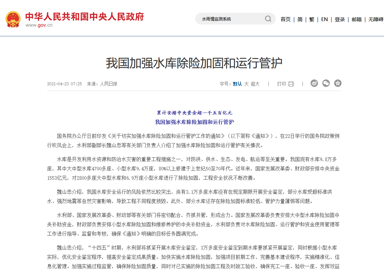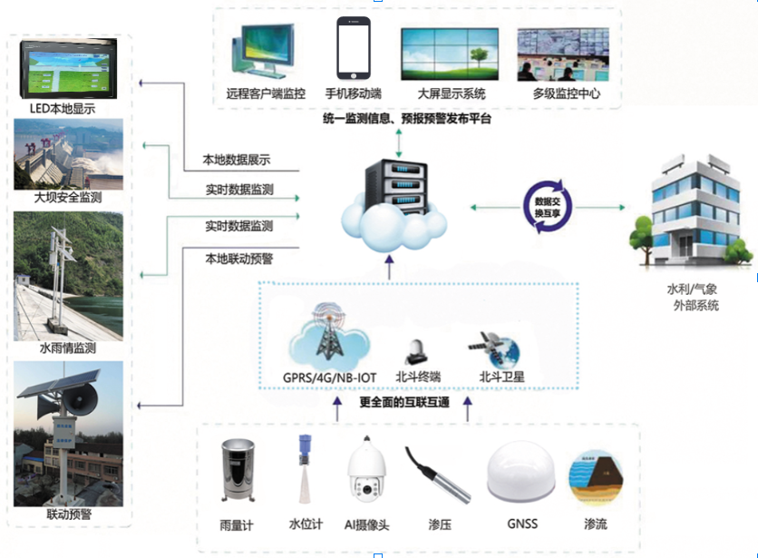 水雨情监测系统的背景主要是为了全面完成"十四五"小型病险水库除险加固,提升小型水库雨水情测报和大坝安全监测能力。根据水利部的规定,雨水情测报要素主要包括降水量、库水位、视频图像等,大坝安全监测要素主要包括渗流量、渗流压力、表面变形等。此外,城市洪涝灾害预警也是一个重要的背景,需要通过水位监测、数据采集等监测系统,实现对城市内涝的及时监测和预警,提高城市的洪涝灾害应对能力。