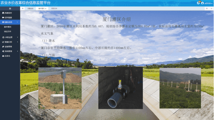 为了保证灌区的安全运行,优化水资源配置,提高用水效率,保证灌区的可持续发展,本文提出了一种新的思路。合晨科技在物联网领域有着丰富的经验,它将物联网、大数据、云计算、5 G通信等多种科技手段相结合,建立了一套适用于各级水利部门的农业水价综合改革管理平台,并在省、市、县、乡、用水协会、用水户等多个层次的用户之间进行了业务上的协调,提高了各个区域的水价综合改革水平,给用户提供了一个软硬件一体化的综合解决方案。