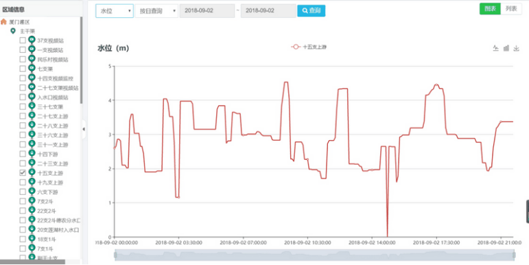 基于GIS对灌区渠道水位流量信息、视频监控、水闸、土壤温湿度、环境气象、降雨量等站点全方位可视化管理,直观形象的展示各站点运行状态、实时数据、布局等。